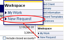 Step 2. In the right Navigation panel click on the �New Request� link.