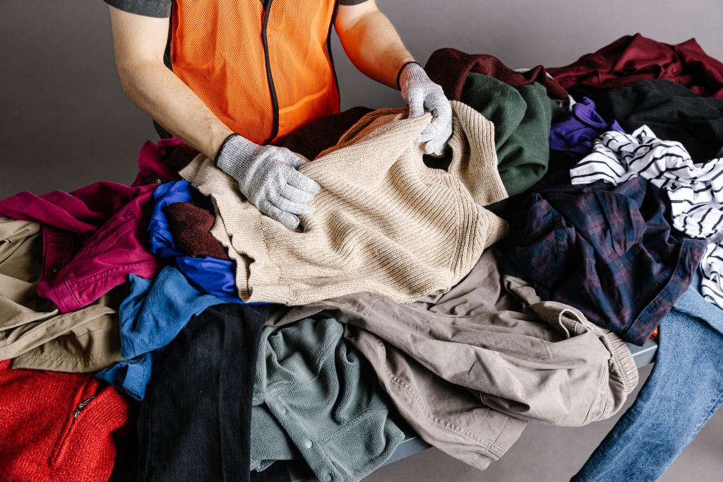 A worker manually sorts through textile waste. Image courtesy of Debrand.