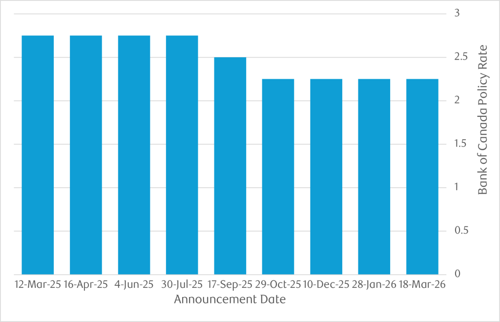 | Announcement Date | Bank of Canada Policy Rate (%) | Change (%) |