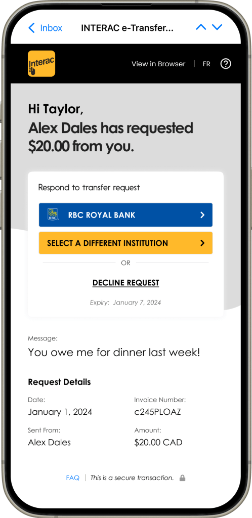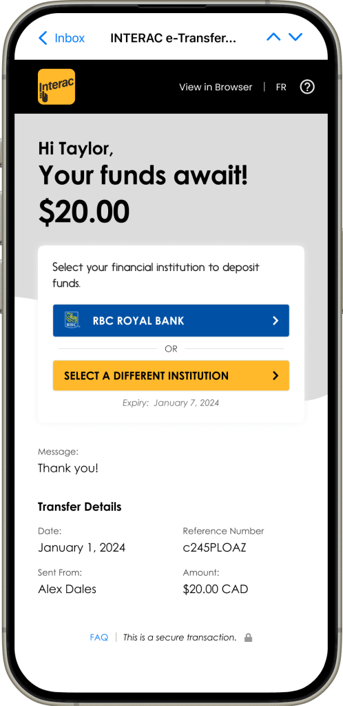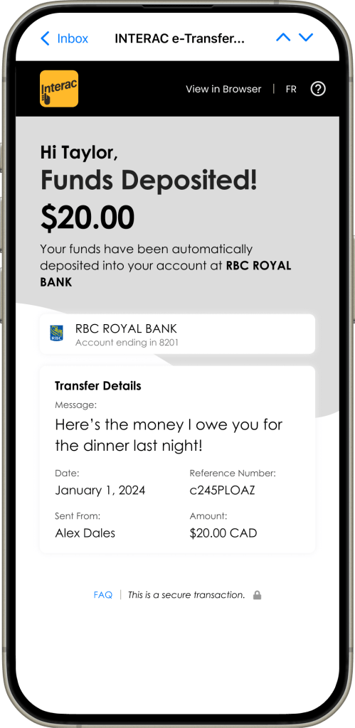 Starting October 22, 2024, the Interac e-Transfer email notifications you receive will look a little different. No action is required on your part; you will continue to enjoy the same security and convenience of Interac e-Transfer. See the new email designs below!