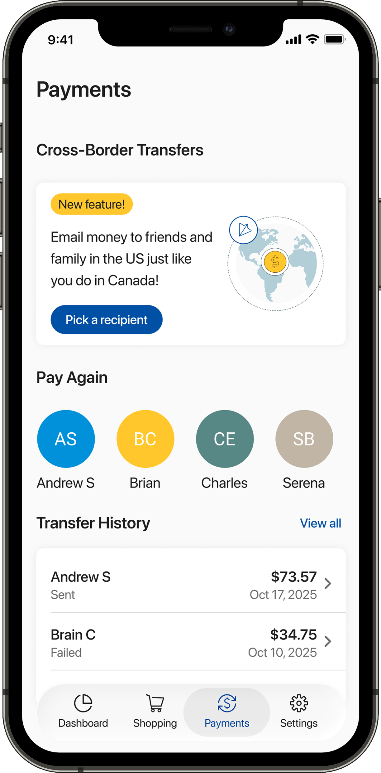 No need to share sensitive account information manually. Email money to friends and family in the US just like you do in Canada!