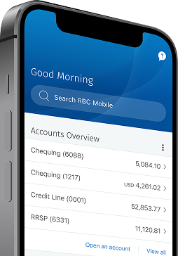The RBC Mobile app4 gives you customized tools and insights so you can save, spend and manage your money with ease. Plus, it lets you stay connected to your money 24/7.